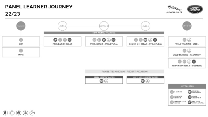 Each JLR Authorized Collision Repair facility must have two technicians that have completed the following per the US Global Learner Journey: