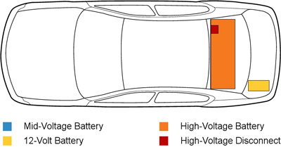 When welding on a hybrid vehicle or electric vehicle, follow the same precautions as when welding on a conventional vehicle. In addition, there are precautions to take with the high-voltage battery. As a best practice, disconnect both the 12 V battery and the high-voltage battery service disconnect. (Note: Always disable the high-voltage battery following the vehicle makers repair information and follow all safety precautions.)